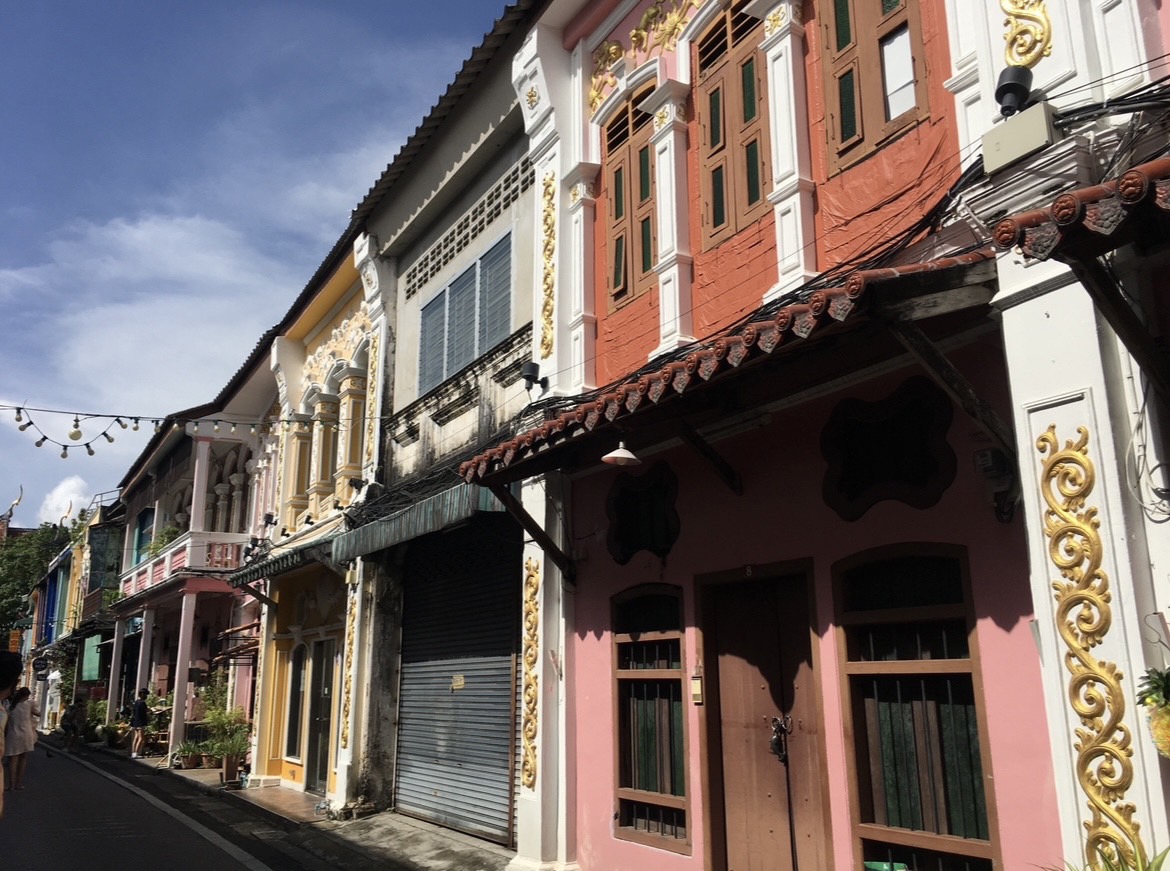 The architecture here tells a story. These buildings, some in pastel-toned, some in vibrant colours, date back to the late 19th and early 20th centuries, when Chinese immigrants and European settlers arrived during Phuket’s tin mining boom. Their legacy lives on in the form of decorative facades, arched windows, and ornately carved wooden doors. Some of these shophouses have been turned into cute cafes, galleries, boutique guesthouses, and souvenir shops—while others have been left charmingly weathered by time.