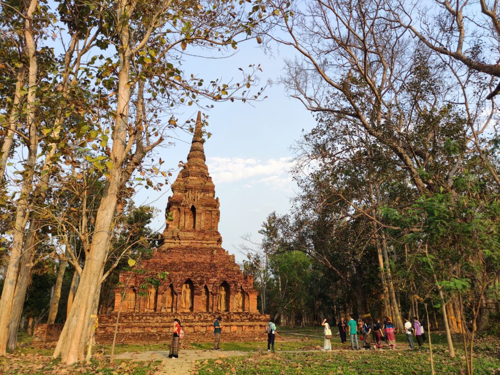 Wat Pa Sak, meaning “the temple of the teak forest,” features a stupa surrounded by tall teak trees.